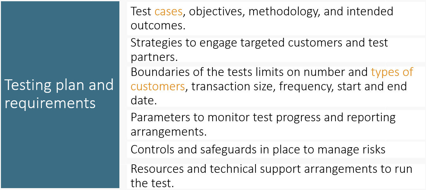 The testing of innovations in the Fintech Regulatory Sandbox is for a period of twelve (12) months from the approval date.