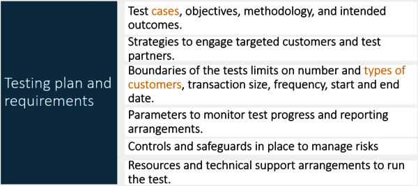 The testing of innovations in the Fintech Regulatory Sandbox is for a period of twelve (12) months from the approval date.